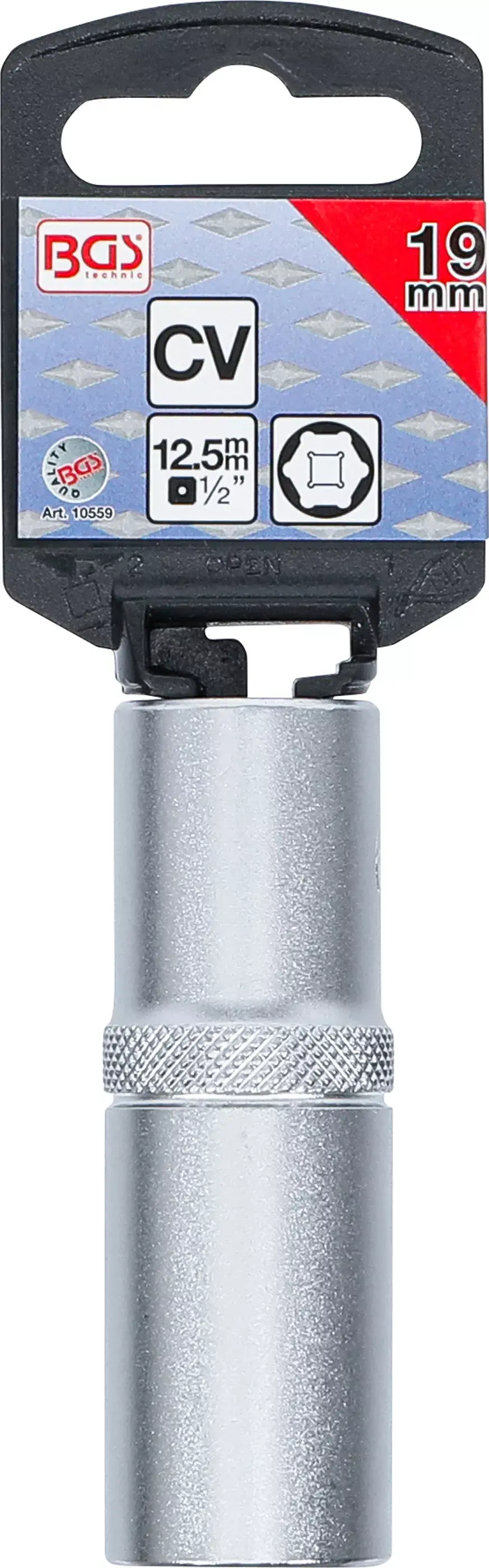 Nástrčná hlavica, šesťhranná, predĺžená, štvorhran 1/2" (12,5 mm), otvor kľúča 19 mm, ryhovanie p...