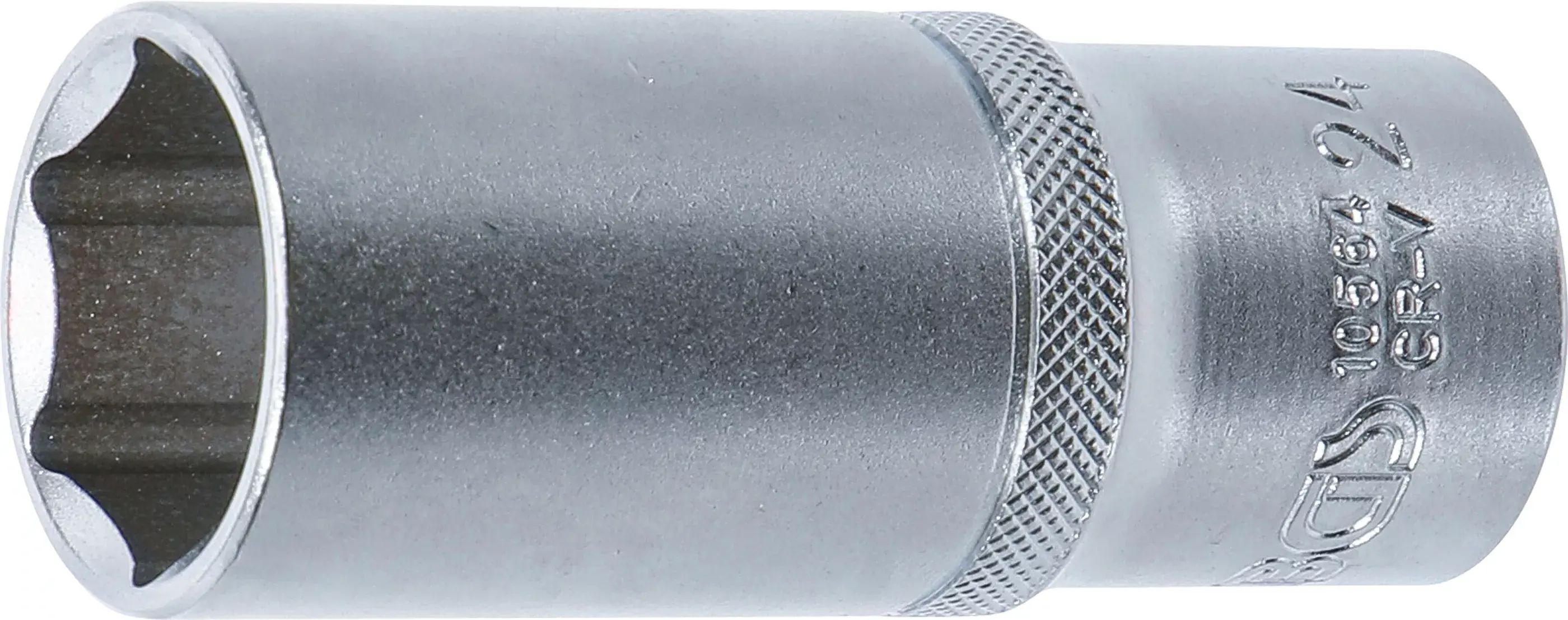 Predĺžená šesťhranná hlavica s 1/2" štvorhranom určená na prácu so skrutkami a maticami veľkosti 24 mm na ťažko prístupných miestach.
