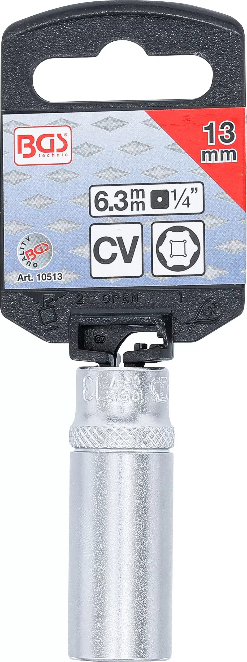 Nástrčná hlavica, šesťhranná, predĺžená, štvorhran 1/4" (6,3 mm), otvor kľúča 13 mm, ryhovanie pr...