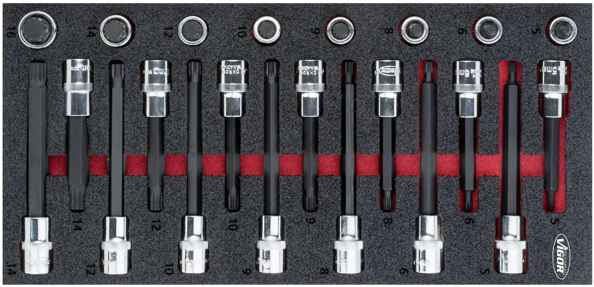 Sada hlavíc s bitmi XZN, 22 kusov, v penovej výplni do dielenského vozíka. Štvorhran 1/2", veľkos...
