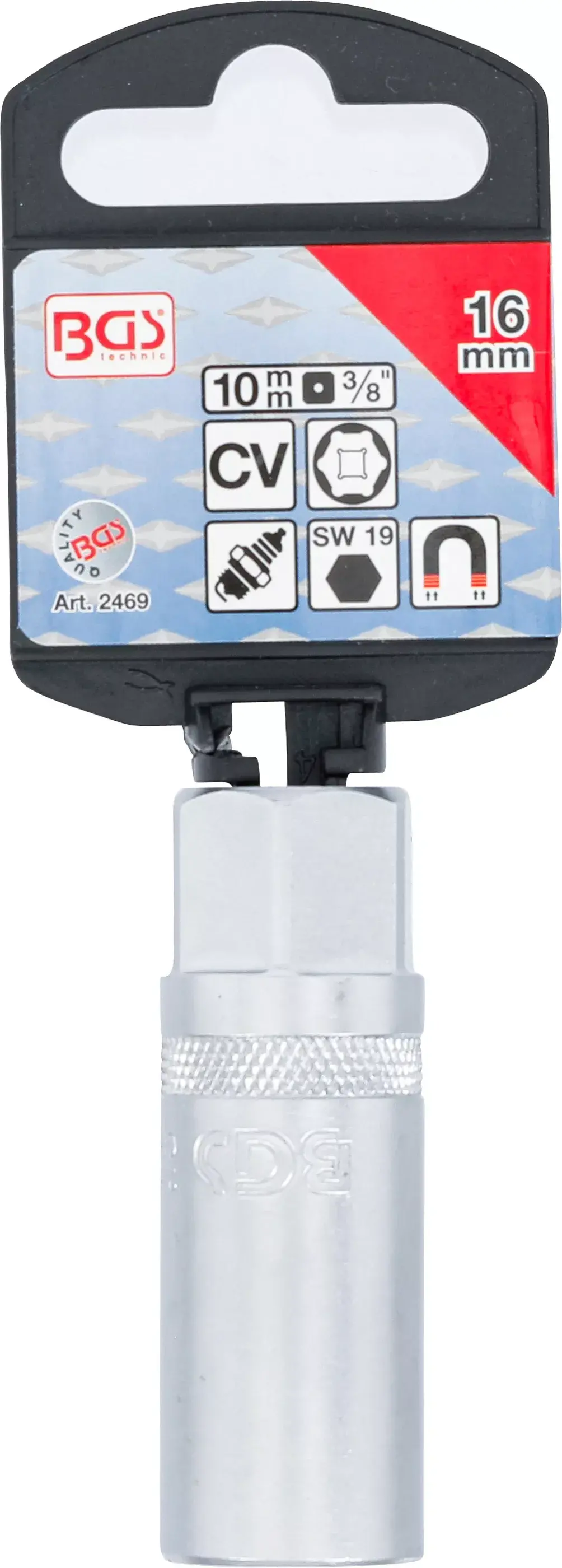 Nástrčný kľúč na zapaľovacie sviečky s 3/8" štvorhranom určený na montáž a demontáž sviečok motorov s otvorom 16 mm.