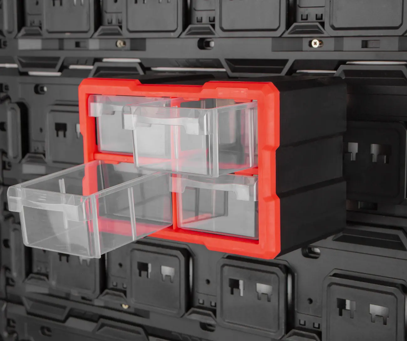 • Prehľadnosť: Transparentný dizajn zásuviek umožňuje rýchle zistenie obsahu bez nutnosti ich otvorenia.