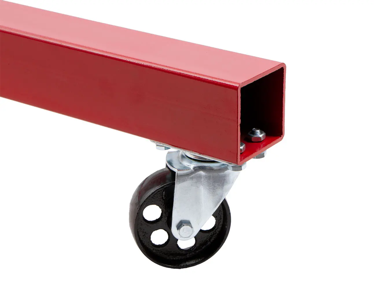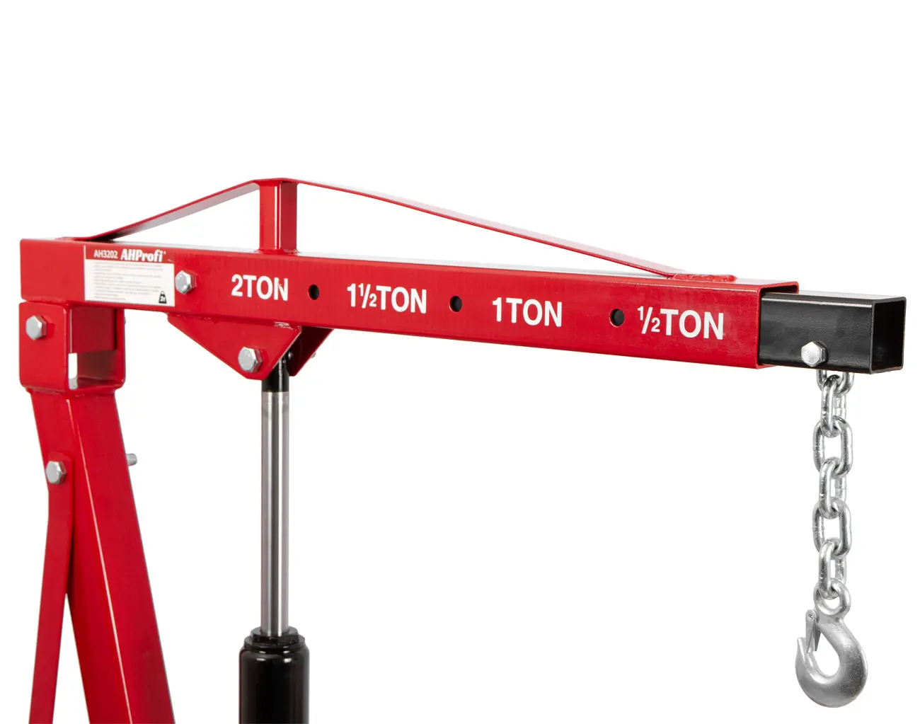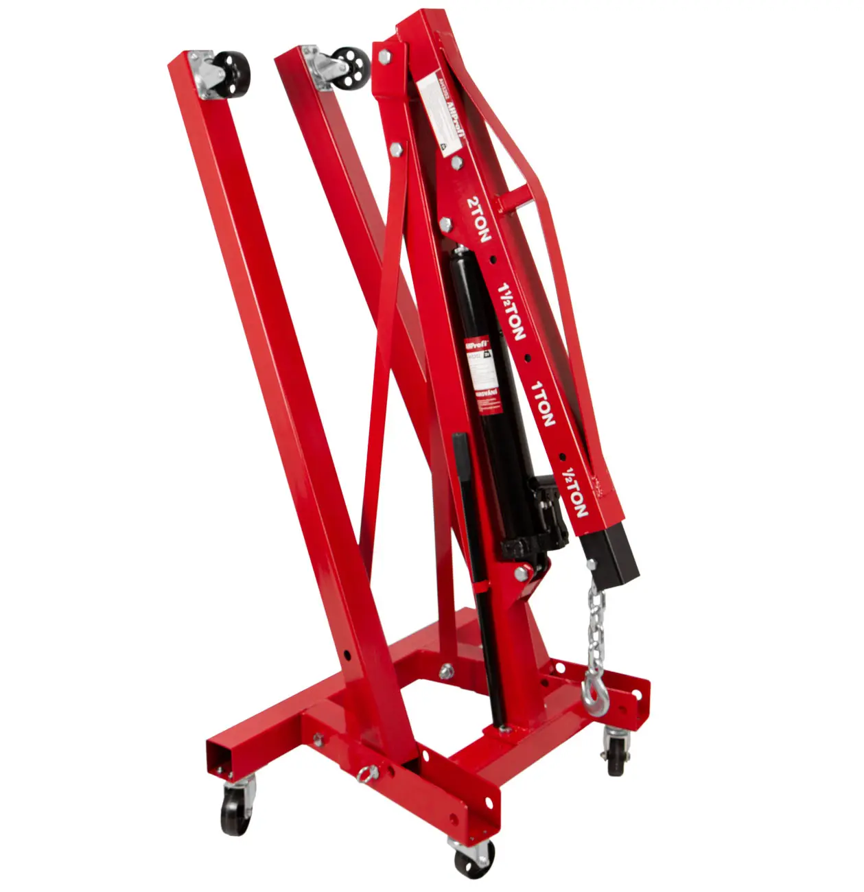Žeriav je vybavený výsuvným ramenom so 4 pozíciami zaťaženia, sklopnými nohami pre úsporné skladovanie a 6 otočnými kolieskami pre maximálnu mobilitu.