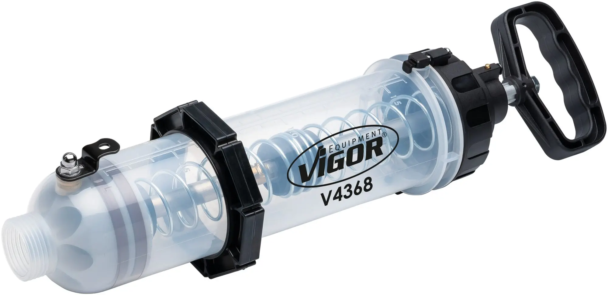 Veľký plniaci otvor urýchľuje dopĺňanie oleja, uzatvárací ventil umožňuje kontrolu prietoku a systém proti spätnému rázu zvyšuje bezpečnosť. Praktické závesné háky umožňujú odloženie plničky počas práce.