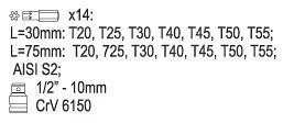 Sada bitov 15 ks TORX s otvorom box - YT-0417