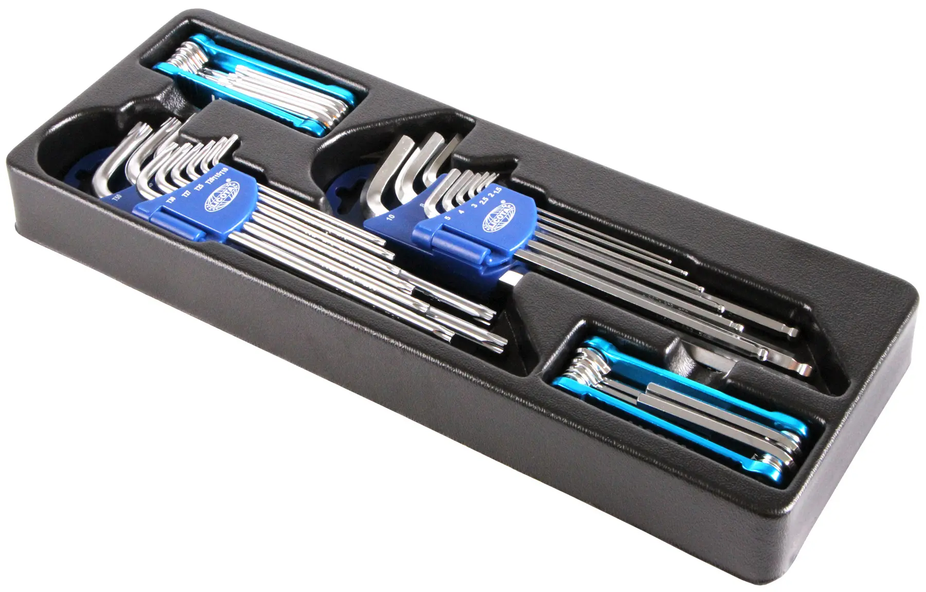 Plastová výplň profesionálnych Torx a Imbusových kľúčov do dielenských vozíkov alebo pracovných stolov (ponkov).