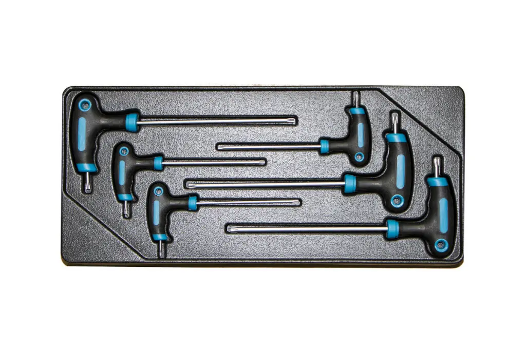 Sada 6 ks T-kľúčov TORX vo výplni do dielenského vozíka obsahuje: