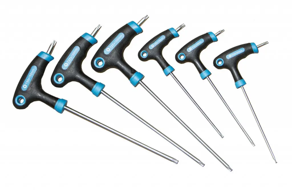 Veľkosti T10|T15|T20|T25|T27|T30.T - kľúče TORX vo výplni do dielenského vozíka, 6 ks.