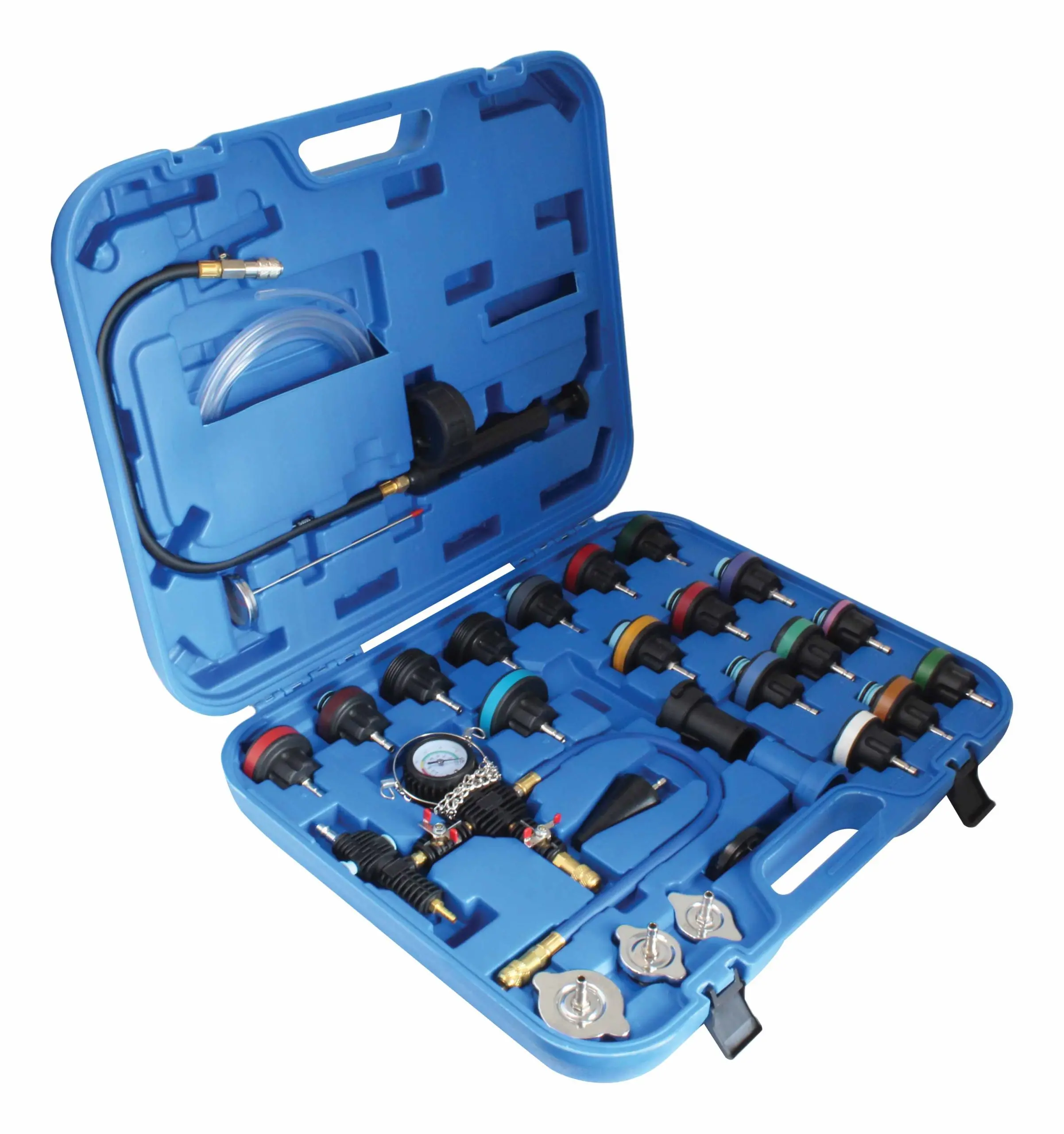 Tester chladiaceho systému, sada 27 ks, meranie tlaku 0–2,5 bar, 17 farebne odlíšených adaptérov ...