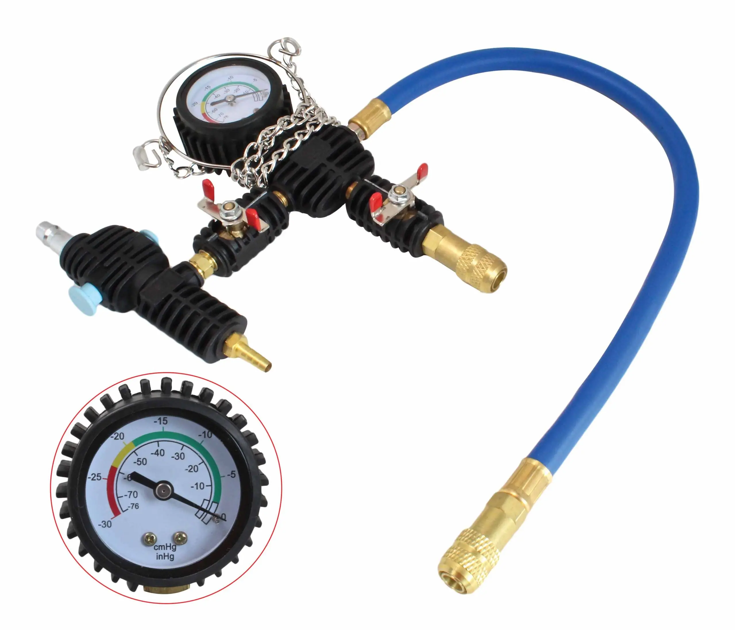 Tester umožňuje kontrolu netesností v systéme pod tlakom a zároveň obsahuje vákuový systém na plnenie chladiacej kvapaliny bez vzduchových bublín.
