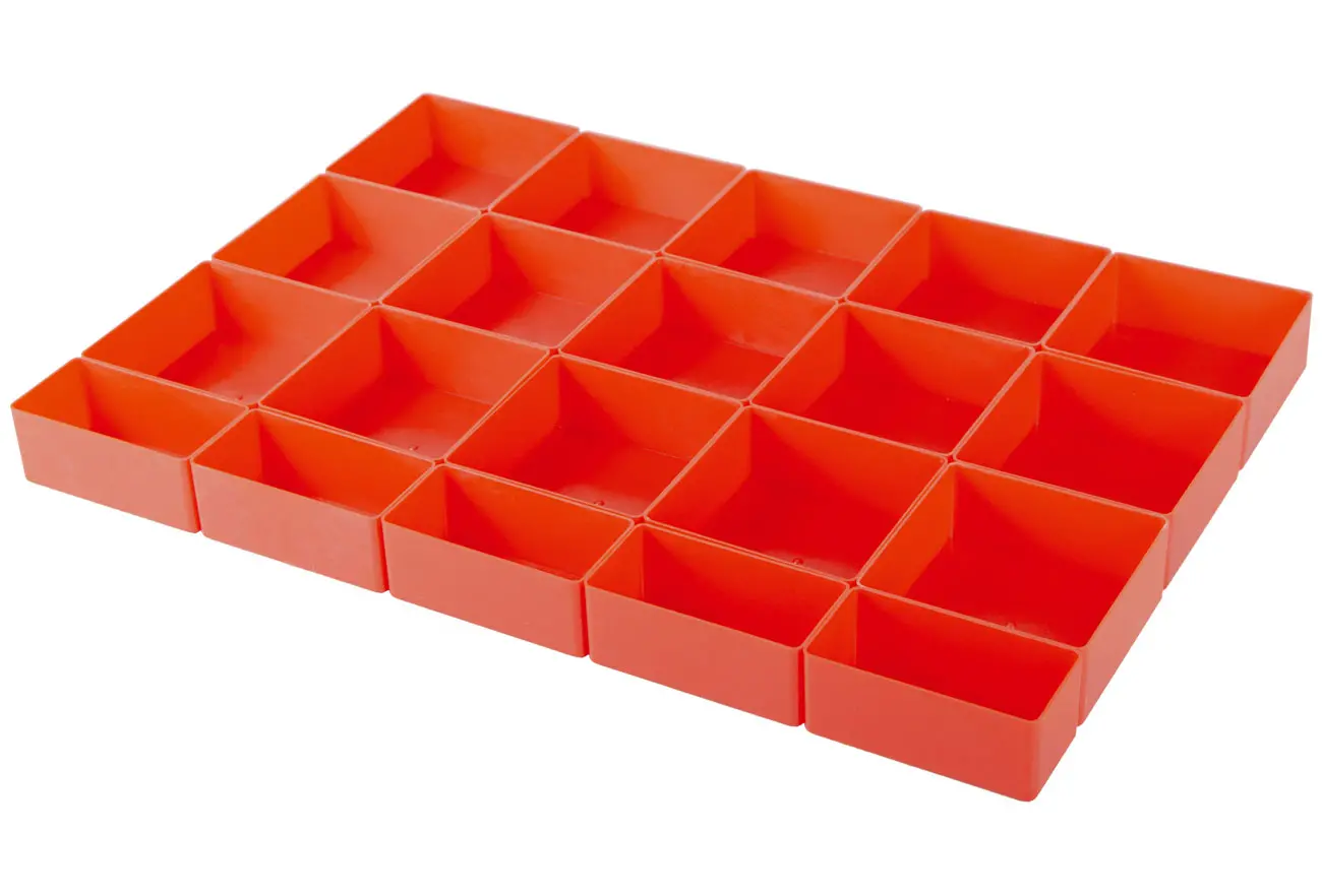 Sada plastových boxov 20 ks, vhodná do zásuviek dielenských vozíkov a skriniek. Odolný ABS plast ...