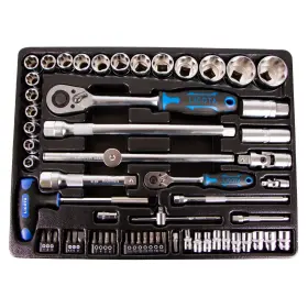 Výplň pojazdného vozíka s gola sadou 1/4" a 1/2", celkom 60 kusov náradia - račne, adaptéry, orec...