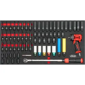 69 kusov náradia v sade nástrčných kľúčov pre rázový uťahovač a momentový kľúč vo výplni do diele...