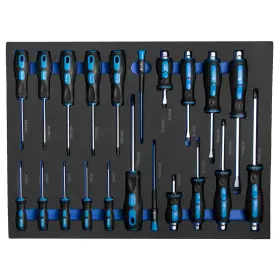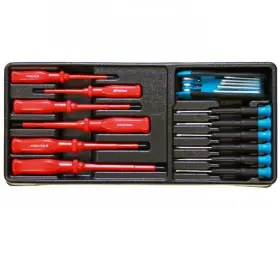 Elektrikárske a hodinárske skrutkovače vo vložke do dielenského vozíka, 13 ks.