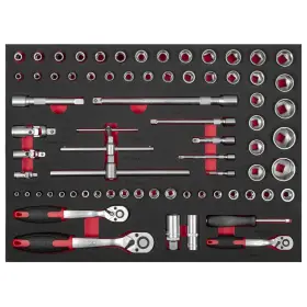 Výplň do dielenského vozíka s náradím, gola sada 1/2", 3/8" a 1/4", rozmery výplne 525 x 390 x 36...