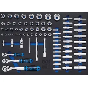 Gola sada 1/2", 3/8", 1/4", nástrčné kľúče, predlžovacie nástavce a ďalšie, penová výplň.