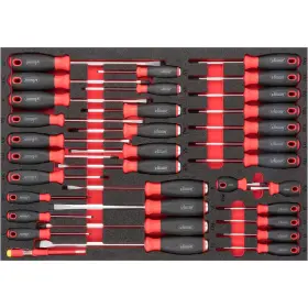 Ploché a krížové skrutkovače, úderové, 34 ks, v penovej výplni.