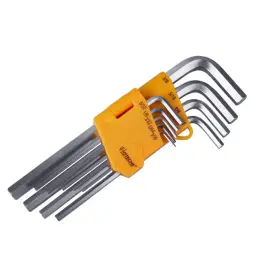 9dielna sada skrátených imbusových kľúčov bez guličky. Rozmery: 1,5 -10mm. Kľúče sú vyrobené z oc...