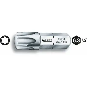 Bit Torx T45 s otvorom, šesťhran, uchytenie 3/8", dĺžka 30 mm. Vyrobený z chróm-vanádiovej ocele.
