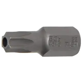 Bit Torx T30 s otvorom, šesťhran, uchytenie 3/8", dĺžka 30 mm. Vyrobený z chróm-vanádiovej ocele.