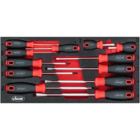 Sada šroubováků ve vložce do dílenských vozíků 1/3+ 2 K o rozměrech 393 x 188 mm.