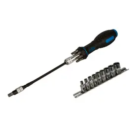 Sada ergonomického ráčnového skrutkovača s bitmi 7 v 1. Obsahuje ploché, krížové a TORX bity.