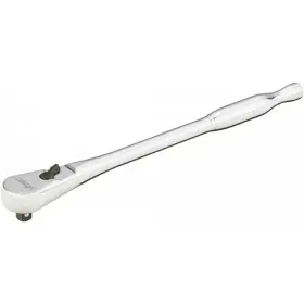 Vyhnutá ráčna, rozměr 3/8", z Cr-V oceli,délka 202 mm, 72 zubů, matný chromový povrch.