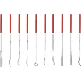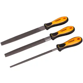 Plochý, guľatý a polguľatý pilník na kov, dĺžka 200mm, ergonomická rukoväť, hmotnosť 635g.