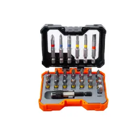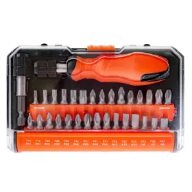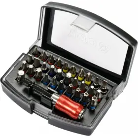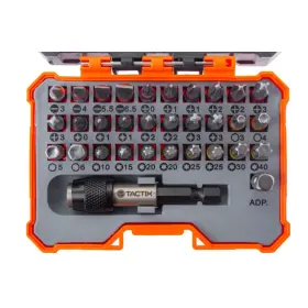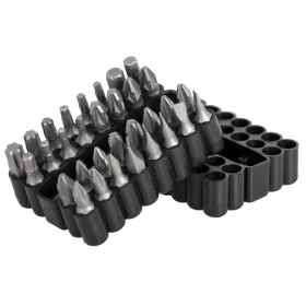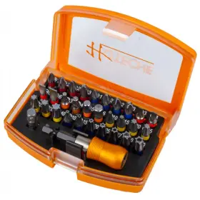 33 ks bitov a predlžovací nadstavec v sade. Bity: ploché, krížové, TORX, HEX a adaptér.