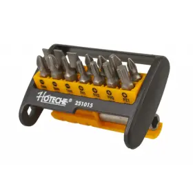 Sada bitov v plastovom držiaku obsahujúcej bity ploché, krížové a TORX.