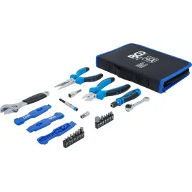 31 ks profesionálneho náradia, kliešte, skrutkovače, vodováha, imbus a ďalšie príslušenstvo.
