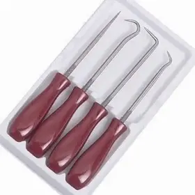 Na montáž a demontáž drobných súčiastok, rovné a zahnuté háčiky, ihly a škrabka.