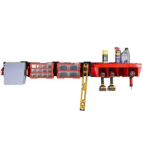 Držiak AKU náradia na stenu, 4 priehradky, 2 police - B70332