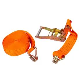 Popruhy zakončené hákom a račňou, dĺžka 4,5 m, šírka 25 mm, pracovné zaťaženie 180 kg, pevnosť pr...