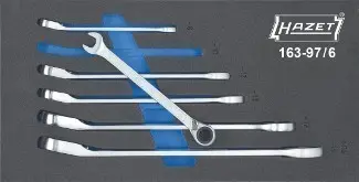 Sada kvalitných očkoplochých račňových kľúčov HAZET, 6 kusov v penovej vložke, ideálne do zásuvie...
