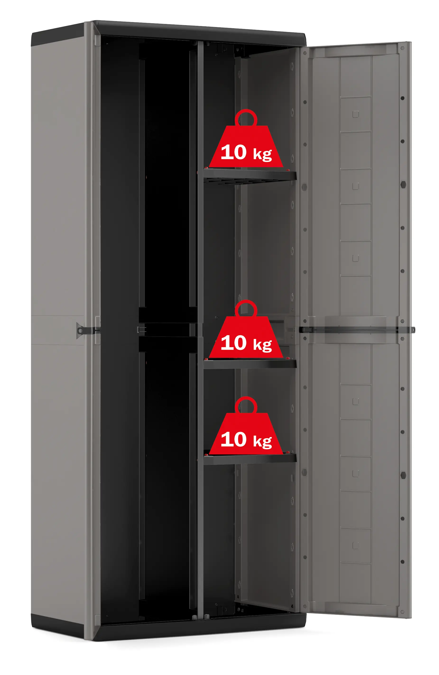 Hľadáte úložný priestor, ktorý sa prispôsobí rôznym typom vybavenia? Plastová skriňa Keter Jolly Utility ponúka inteligentné rozdelenie priestoru – jedna polovica je vybavená nastaviteľnými policami s nosnosťou 10 kg, druhá umožňuje uloženie dlhých predmetov. Ideálna voľba do dielne, pivnice aj technickej miestnosti, navyše s možnosťou uzamknutia visiacim zámkom.
