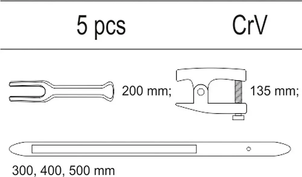 Sada 5 kusov automobilového príslušenstva z CrV ocele. Sada je prehľadne srovnána vo vložke do zásuvky z PVC.