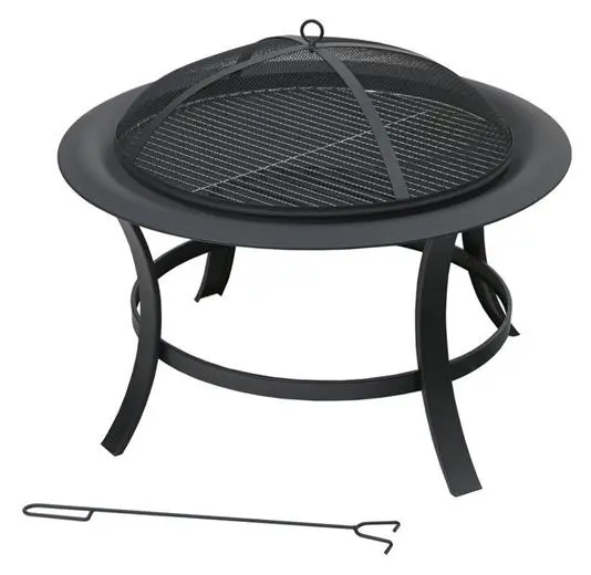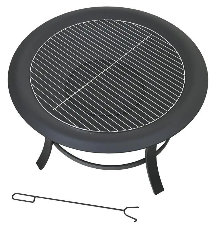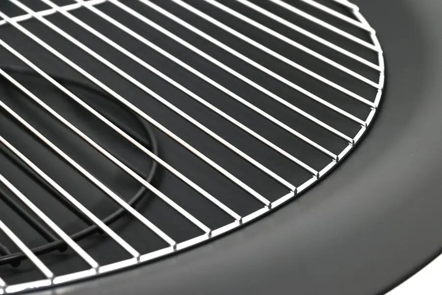 Ohnisko je vyrobené z kvalitnej ocele s vysokoteplotným čiernym náterom a disponuje dvojprstencovou konštrukciou, ktorá zabezpečuje vysokú stabilitu pri používaní. Nerezový rošt s priemerom 60 cm je ideálny na grilovanie mäsa, zeleniny aj ďalších pokrmov. Špeciálne tvarovaný poklop s pletivom slúži ako ochrana proti iskram a výrazne zvyšuje bezpečnosť aj komfort pri posedení pri ohni. V spodnej časti sa nachádza oceľová mriežka so smaltovanou povrchovou úpravou, ktorá slúži na zachytávanie popola. Súčasťou balenia je aj kovový pohrabáč, ktorý uľahčuje manipuláciu s ohňom aj zloženie poklopu.