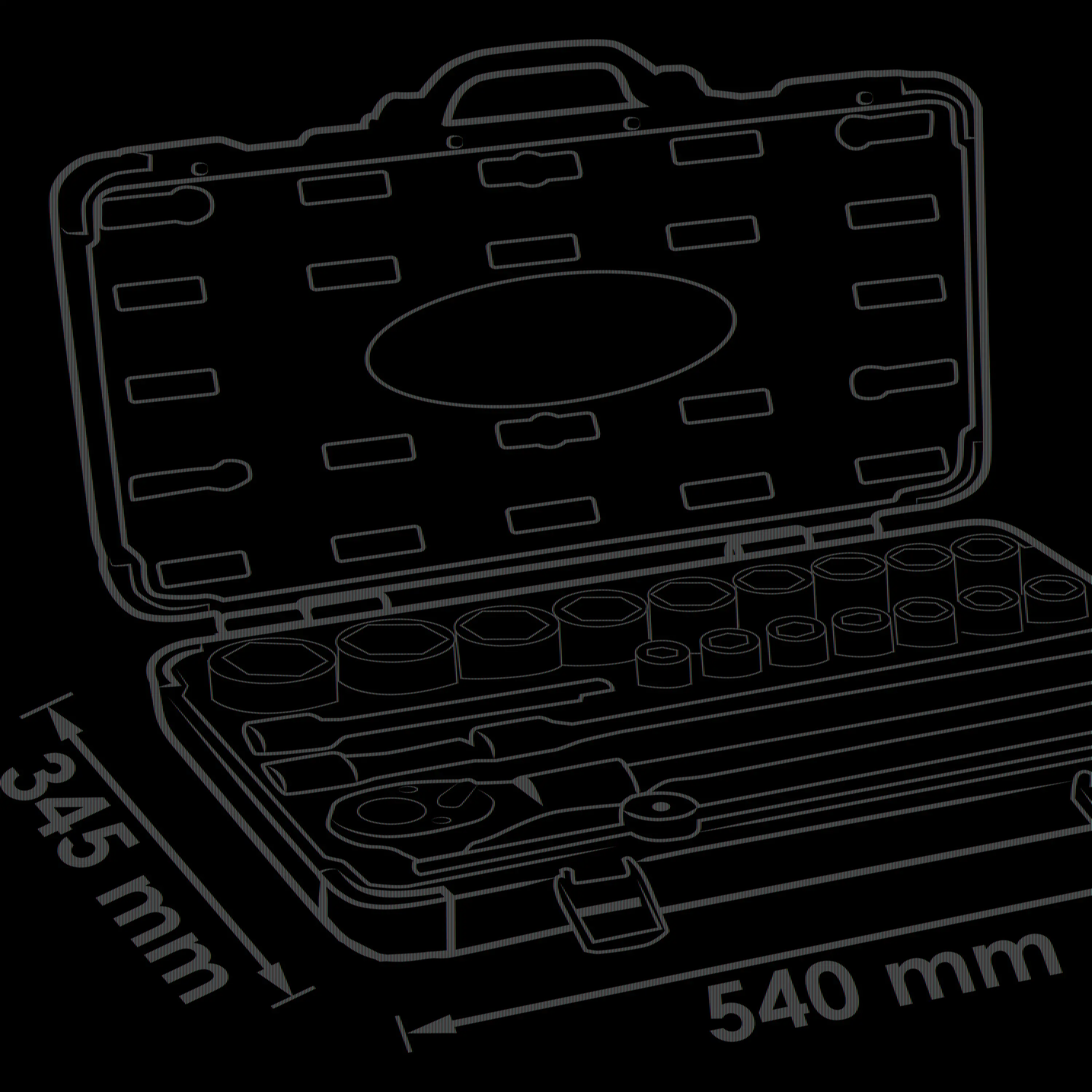 • 21 kusov v sade – obsahuje veľkosti nástrčných kľúčov od 19 do 50 mm.