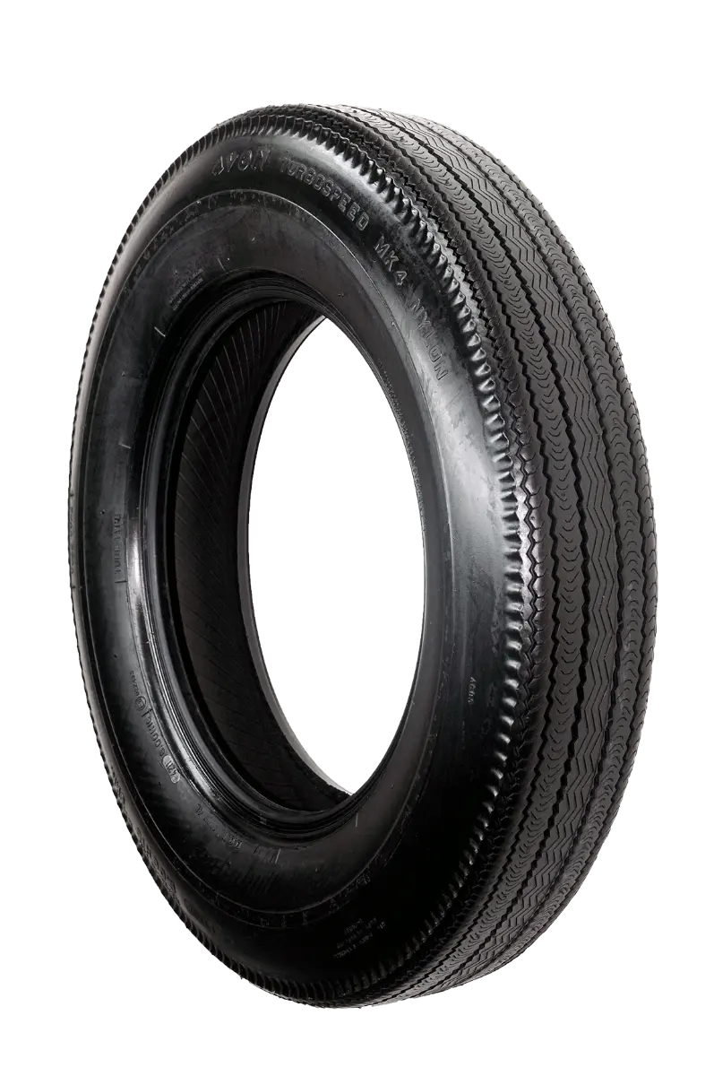 Avon Turbospeed 600H16 93H Die Hochleistungs-Querlenker von Avon wurden in den 1950er und 60er Jahren unter dem Namen „Turbospeed“ entwickelt und gehörten zur Standardausrüstung vieler der schnellsten Autos der damaligen Zeit. Avon stellt den Turbospeed noch heute mit zeitgemäßen Mustern her. Der Turbospeed ist in verschiedenen Größen erhältlich, um für eine Vielzahl von Fahrzeugen aus dieser Zeit geeignet zu sein, und mit Profil- und Seitenwanddesigns, die im jeweiligen Zeitraum für den Verwendungszweck jeder Größe entwickelt wurden. Zu dieser Zeit wurden sie in die schnellsten Autos eingebaut und verfügten über die entsprechenden Geschwindigkeits- und Traglastwerte. Wenn Sie auf der Suche nach zeitgemäßem Aussehen und Leistung für Ihren Nachkriegs-Rolls-Royce, Aston Martin oder Jaguar sind, war der Turbospeed häufig der Erstausrüstungsreifen. Dieses Avon Turbospeed-Direktgewebe der Größe 600H16 ist ideal für Jaguar XK120. Hierbei handelt es sich um einen Hochgeschwindigkeits-Autoreifen in Diagonalbauweise mit Schlauch.