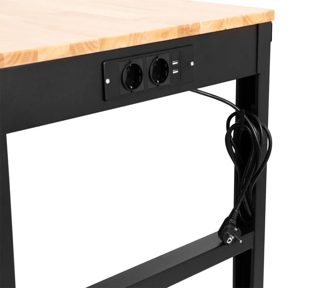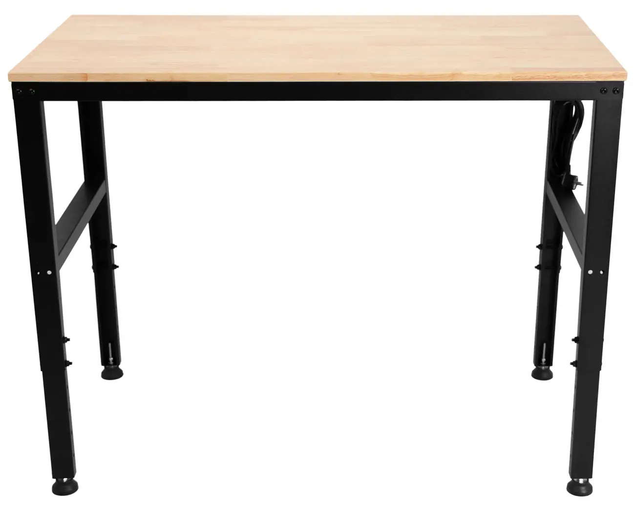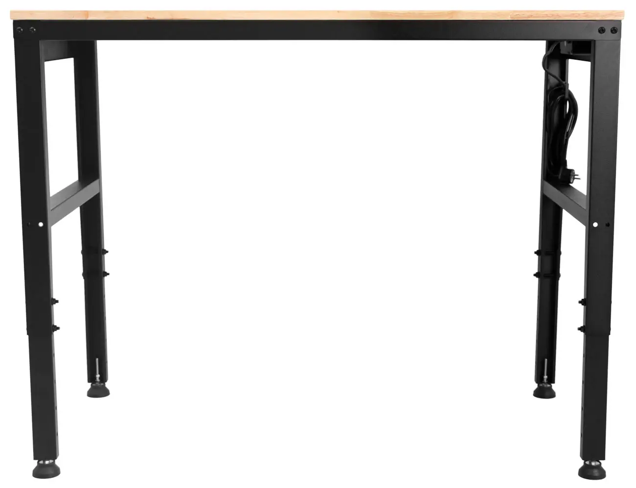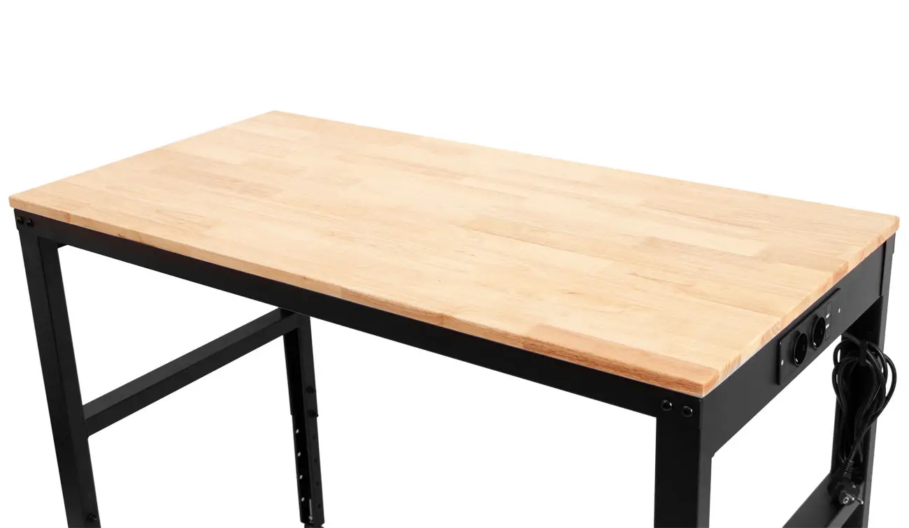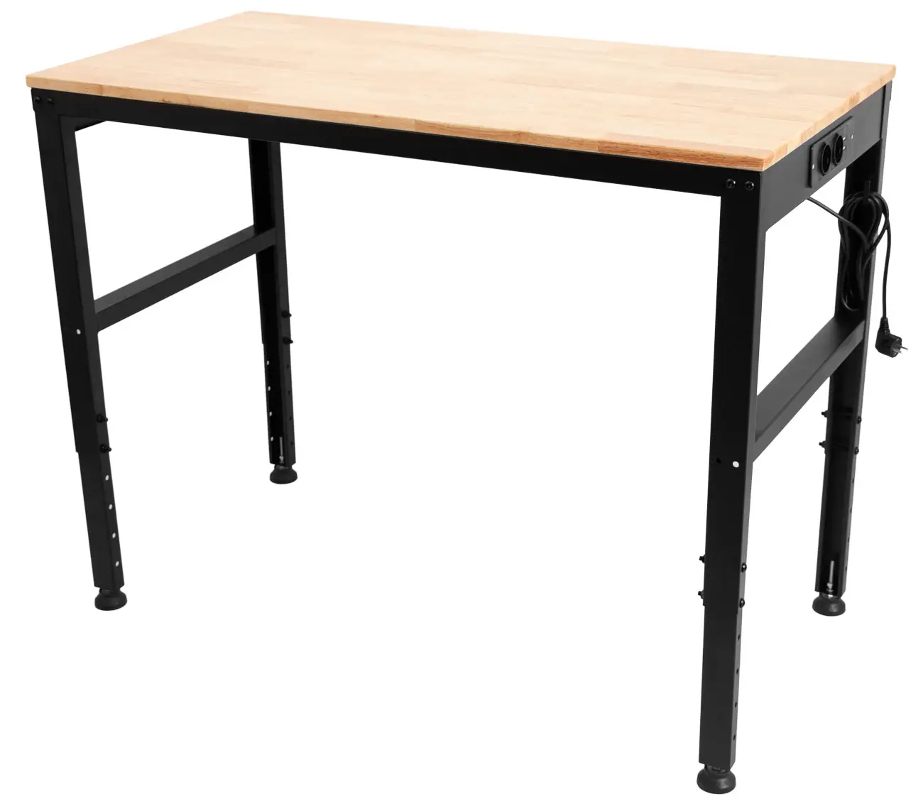 Výškovo nastaviteľný dielenský stôl v rozmedzí 723–1010 mm, 20mm pracovná doska z kaučukového dre...