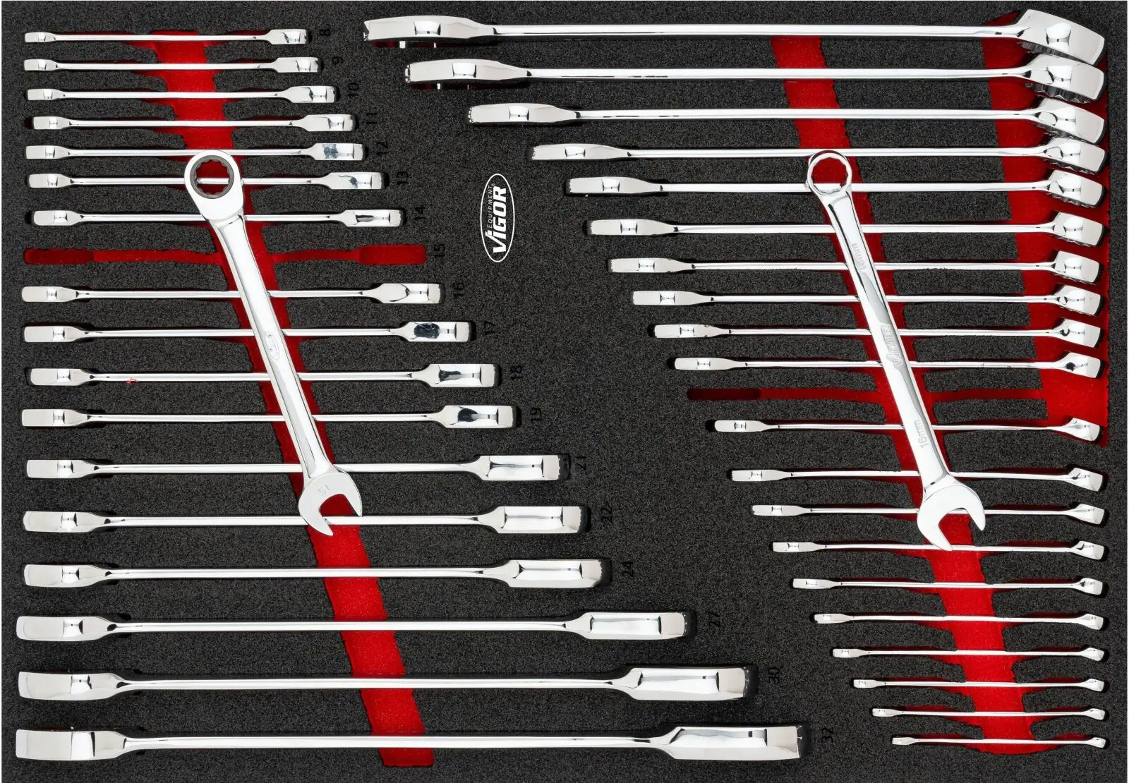 Sada račňových a očkovo-plochých kľúčov, 40 ks v penovej výplni do dielenského vozíka, 18 ks račň...