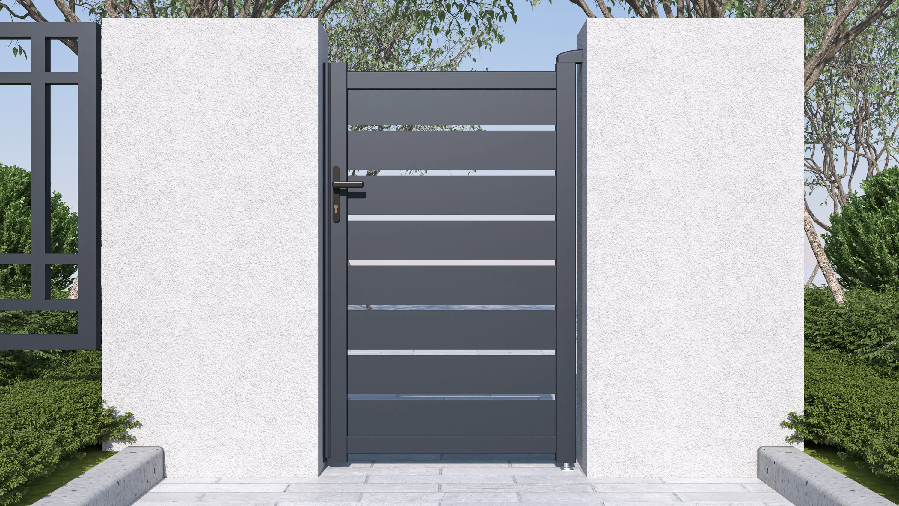 Plotová bránka je kľúčovou súčasťou oplotenia nehnuteľnosti alebo pozemku. 158 cm vysoká hliníková bránka Reno má vďaka práškovému nástreku ešte dlhšiu životnosť, je odolná, atraktívna a jej šírku môžete aj prispôsobiť existujúcemu oploteniu. Otváranie na kľuku a zámok s FAB vložkou.