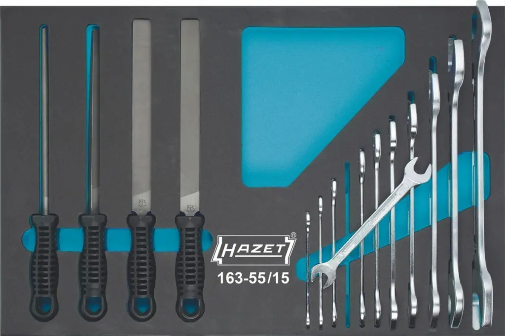 Sada obojstranných plochých kľúčov a pilníkov, nemecká kvalita HAZET, celkom 15 kusov v penovej v...