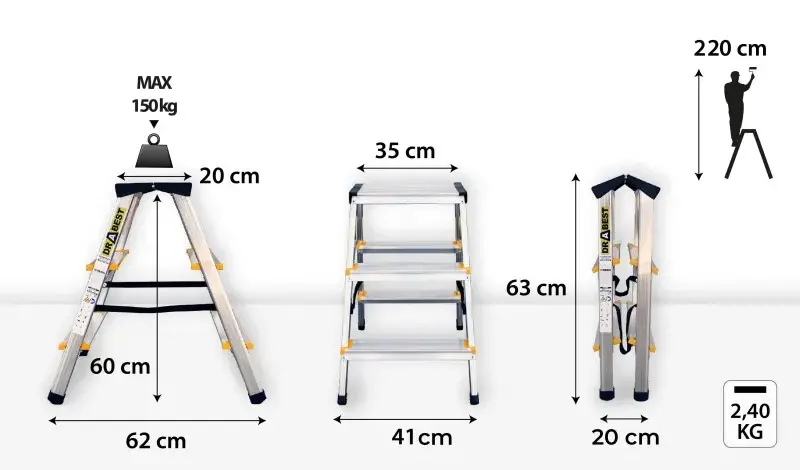 Hliníkové schodíky obojstranné, 2x3 stupne, 2,2 m, max. záťaž 150 kg