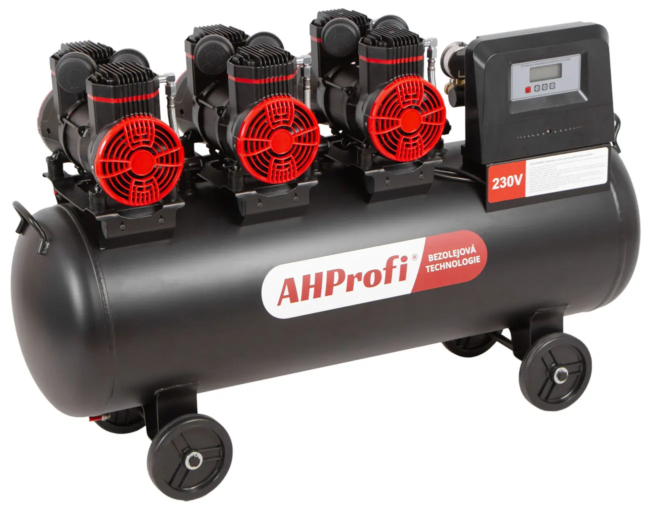Bezolejový kompresor AH0100 s objemom nádoby 100 litrov a plniacim výkonom až 420 l/min predstavuje riešenie pre dielne, priemysel aj náročných používateľov.