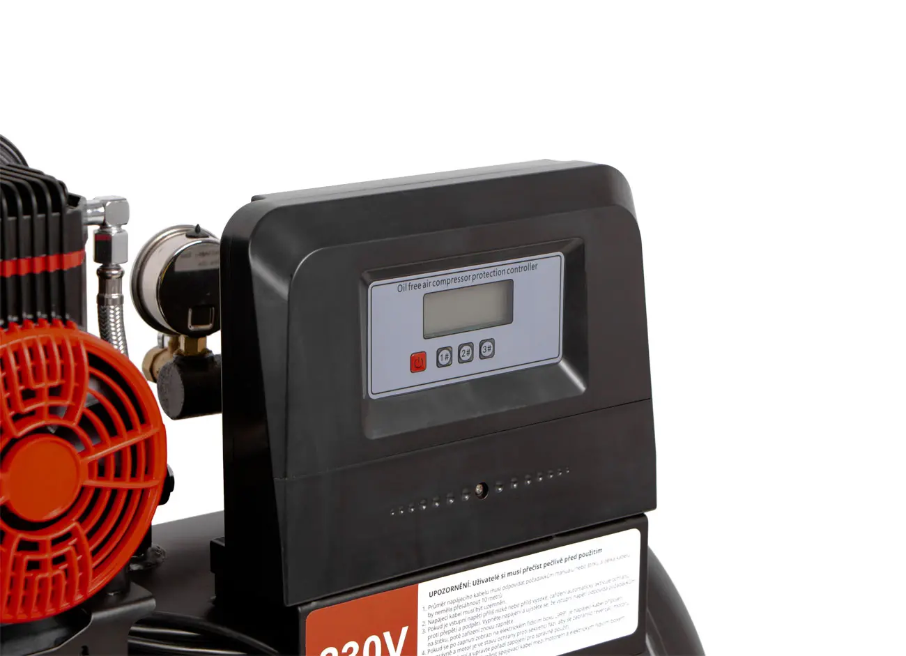 Jednotlivé motory kompresora sú spúšťané postupne, preto reálny príkon nepresiahne 3000 W. Kompresor je možné používať na klasickom 16 A ističi.