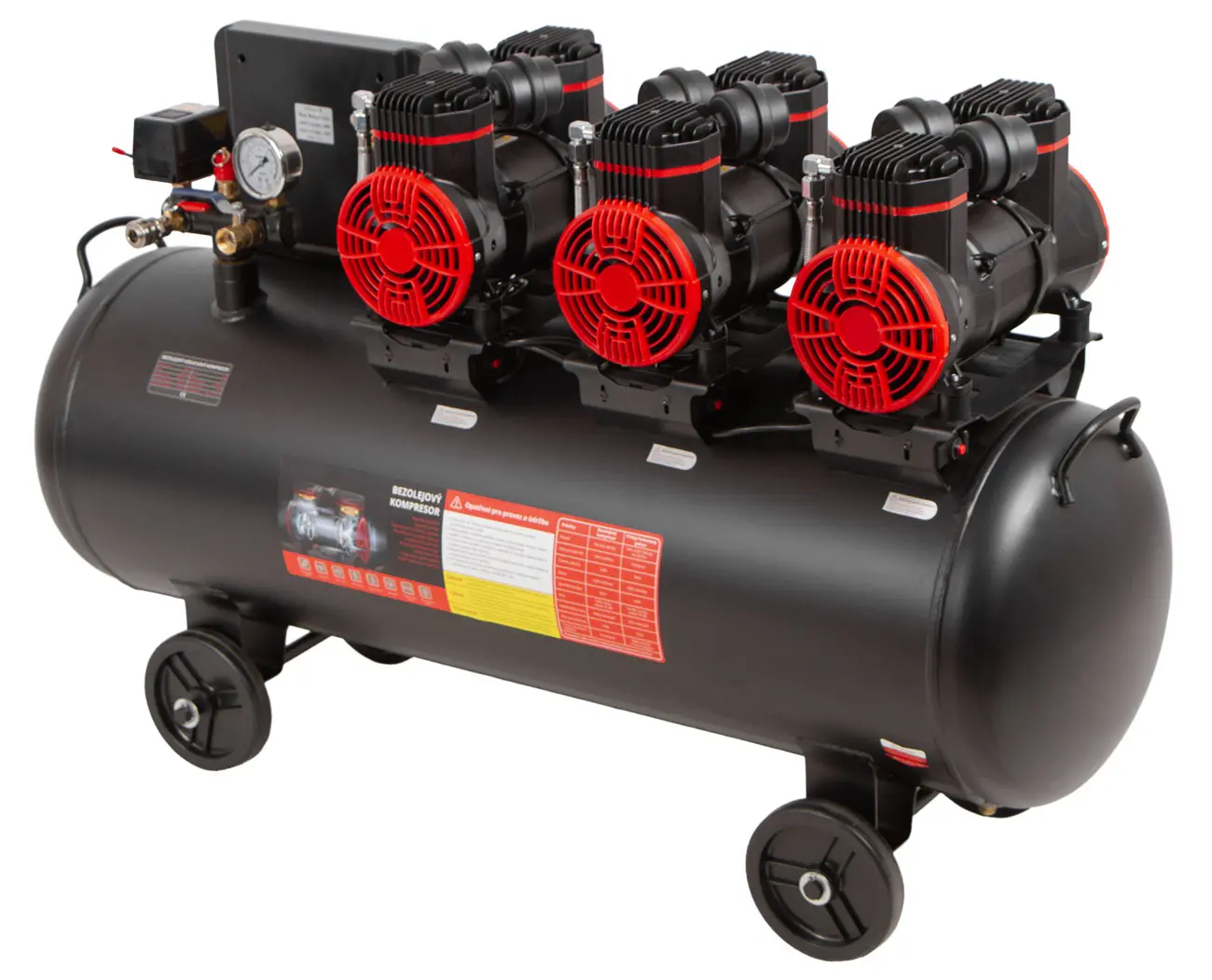 Bezolejový kompresor 100 l, tichá prevádzka, nízke vibrácie. Príkon 3x 1450 W, max. tlak 8 bar, v...