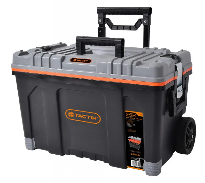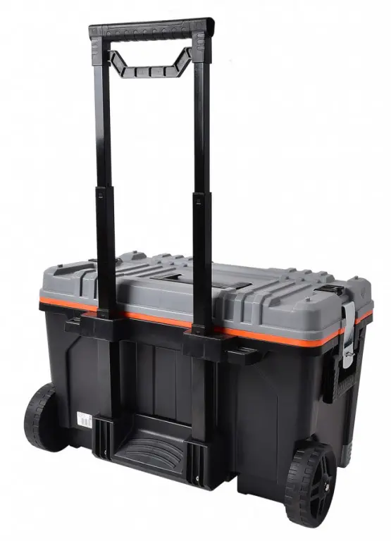 Plastový box vhodný pre uskladnenie náradia a pre jeho ľahký presun. Pre presun je box vybavený 3-mi držadlami a teleskopickou rukoväťou až do výšky 90 cm.