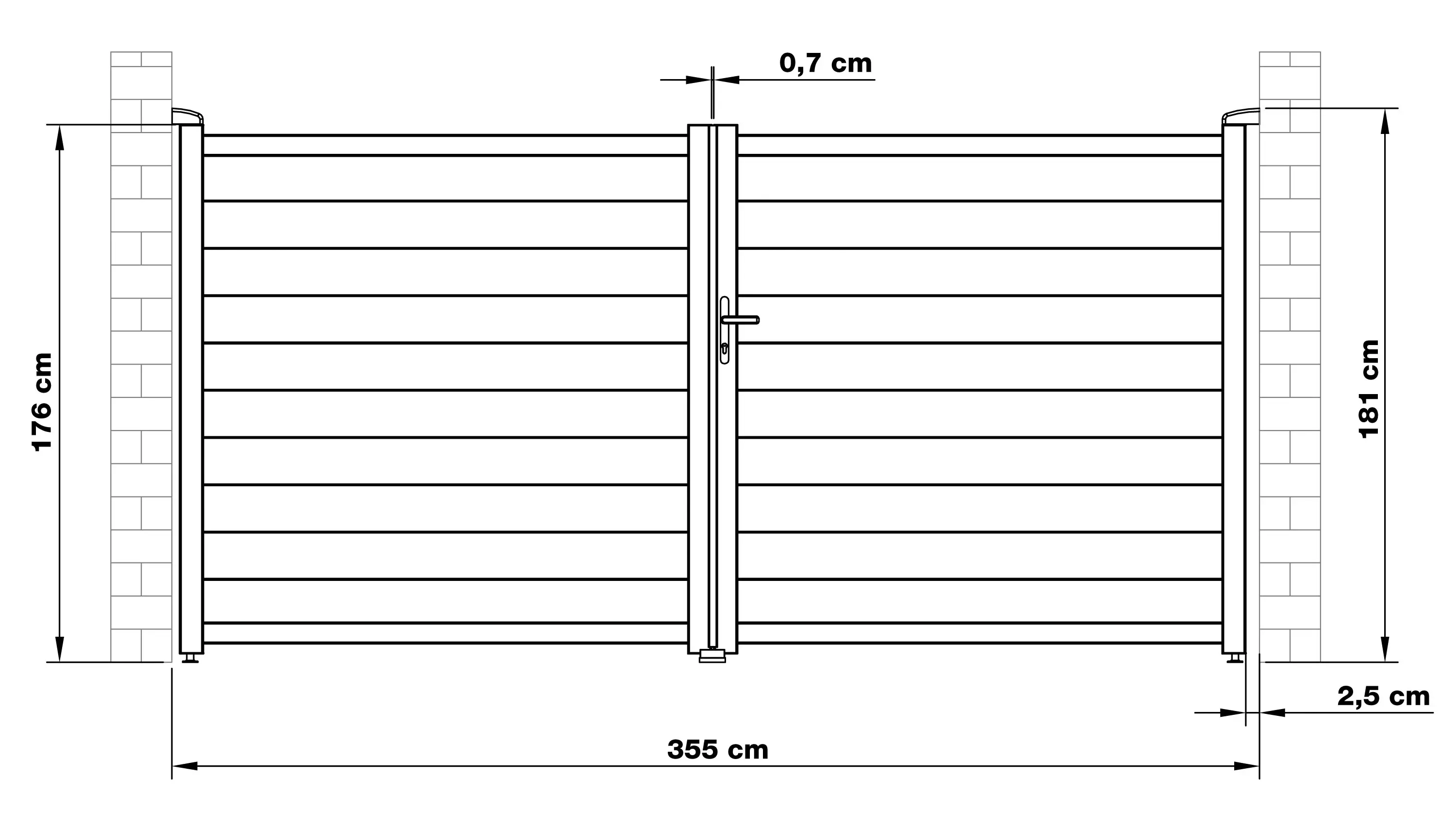 Vjazdová brána je dôležitou súčasťou oplotenia. 173 cm vysoká hliníková brána Orlando má vďaka práškovému nástreku ešte dlhšiu životnosť, je odolná, atraktívna a jej šírku môžete aj prispôsobiť existujúcemu oploteniu. Otváranie na kľuku a zámok s FAB vložkou, šírka 350 cm umožní hladký prejazd všetkých vozidiel.